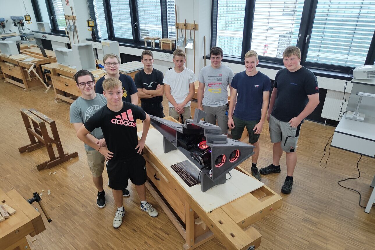 Bei der Wahl des Gehäuses wollten Sie abseits der vorgefertigten kaufbaren Standardgehäuse etwas Einzigartiges schaffen. So kamen Sie auf die Idee, sich bei den anderen Fachbereichen der Berufsschule 1 in Landshut Unterstützung zu suchen. Diese fanden sie bei den Schreinerinnen und Schreinern des Berufsgrundschuljahres (BGJ).
